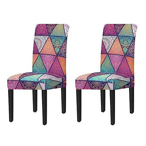 MILEEO Coprisedie per Sala da Pranzo Set di 2, Fodera per Sedia Elasticizzati Rimovibili e Lavabili Stampato Patchwork, Coprisedie Elastici Universali per Casa,Hotel,Ufficio (Mandala Viola, 2 pezzi)