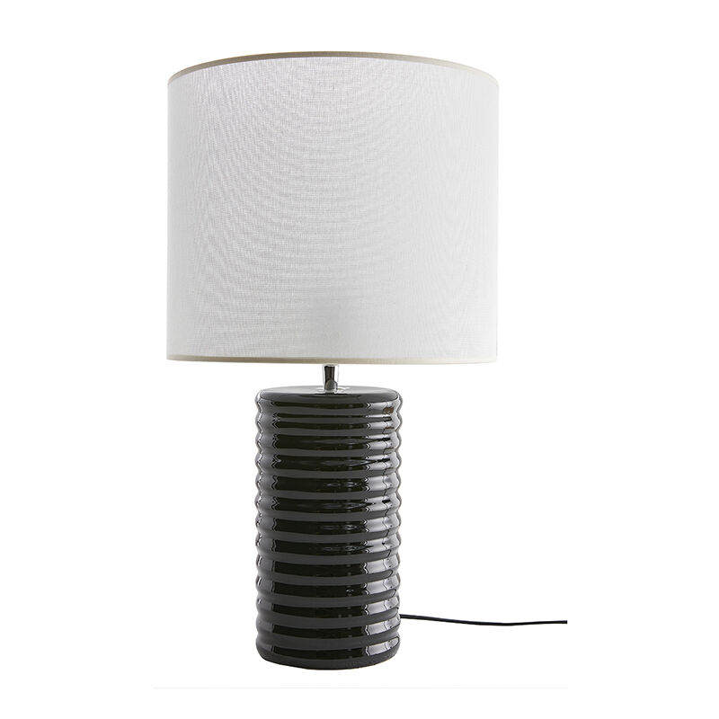 Illumina l'ambiente con la lampada da tavolo BERRO ! Con il suo design extralarge, la sua struttura in ceramica smaltata, BERRO segna il ritorno sulla scena delle grandi lampade da tavolo, tipiche degli anni '70. Con la sua raffinata semplicità, questa lampada dalle morbide ondulazioni ci riporta alla mente la Costa Azzurra. A metà tra lo stile retrò chic e moderno, la sua silhouette bicolore si adatta sia a un arredo contemporaneo che a un ambiente dalle influenze vintage. Sormontata da un paralume cilindrico in cotone écru orlato da una bordura naturale, la base slanciata in ceramica smaltata è declinata in un nero intenso: un binomio di grande effetto! La luce è diretta principalmente verso l'alto e filtra anche attraverso il paralume, creando un'atmosfera rilassante e ovattata. Collocato su una credenza o una consolle, questo complemento d'arredo a tutto tondo non è destinato al solo ingresso o al soggiorno. Posata sul pavimento, grazie alle generose dimensioni, potrà