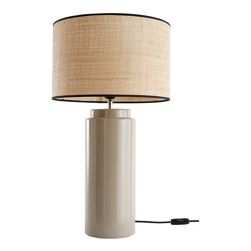 MAJES, l'eleganza della natura nelle nostre case... Con la sua grande base cilindrica in ceramica smaltata color talpa e il paralume in rafia con rivestimento in cellulosa, la lampada da tavolo MAJES è frutto di un sapiente gioco di materiali. Un perfetto mix di modernità e autenticità! Particolarmente elegante la bordura in cotone nero che sottolinea la delicatezza del paralume. Con il suo look dalle linee semplici, questa lampada da tavolo fabbricata in Europa si armonizza perfettamente con il resto dell'arredo. Grazie al suo stile e alle generose dimensioni (L35 x L35 x H64 cm), questa lampada da tavolo non mancherà di attirare l'attenzione. MAJES occuperà un posto d'onore in tutta la casa. In una camera da letto un pizzico bohémien, sarà perfetta accanto a una testata letto in rattan sapientemente lavorato, oppure in un salotto dalle influenze etno-chic. Questa lampada da tavolo di tendenza troverà elegantemente posto su una credenza in legno massello. Grazie al paralume in