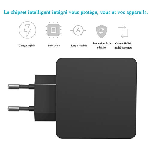 Informazioni sul voltaggio: la tecnologia avanzata può rilevare e fornire automaticamente la tensione e la corrente in base alle esigenze del vostro dispositivo. Ingresso: AC 100-240V, 50/60Hz, 1.5A La tecnologia può automaticamente 5V / 3A 9V / 3A / 12V / 3A / 15V / 3A o 20V / 3, 25A riconoscere e fornire