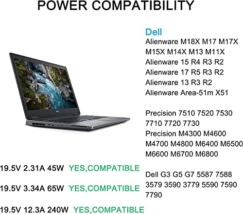 Milipow - Caricatore 240 W adatto per Alienware X51, X51 R2, 15 17 M17x R2 R3 R4, 17 R5, M17, 18 M18 M18 x R2, precisione 7710 7720 7730 M4700 M48000 M480 6400. M6500 M6600 M6700 M6800.