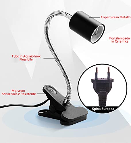 【Portalampada bello robusto】- Supporta lampade fino a 100 watt, il cavo flessibile ha lunghezza da 30cm, adatto per rettili, anfibi, pesci, mammiferi, ecc.