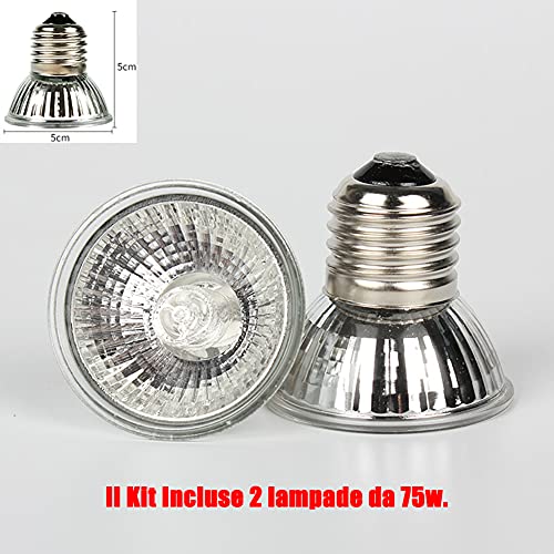 【Prevenire le malattie metaboliche】- Fornisce i raggi UVB e UVA essenziali per i rettili per assorbire e metabolizzare il calcio e prevenire le malattie metaboliche, il kit è fornito 2 lampade da 75w.