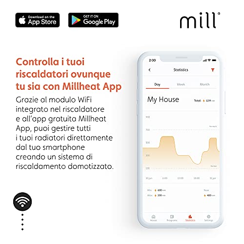 RADIATORE AD OLIO: Il radiatore ad olio Mill Gentle Air 2000WIFI3 offre una soluzione de riscaldamento rapido per tutte le stanze fino a 41mq in base all'isolamento termico, ovunque sia nella sua casa.