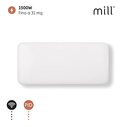 Mill Termoconvettore elettrico Norgese a parete PA1500WIFI3 serie Invisible Stell 1500W riscalda fino a 31mq, con WiFi e PID integrati, controllo da smartphone con l'app Millheat