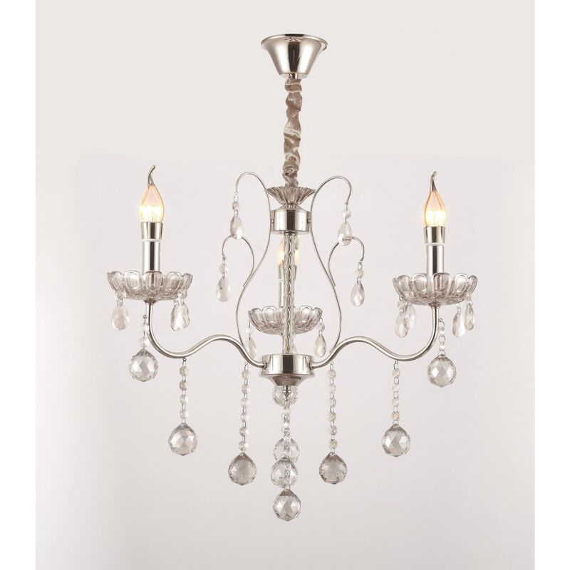 Lampadario Classico in Vetro con Cristalli da 3 braccia in oro o argento. Costruito in Vetro lavorato con pendenti in Cristallo Caratteristiche: Dimensioni: ⌀ 500 mm h 480 mm Confezione: Confezionato singolarmente Materiale: Metallo Vetro Colore: Trasparente (anima cromata) Attacco: E14 Lampadine non incluse