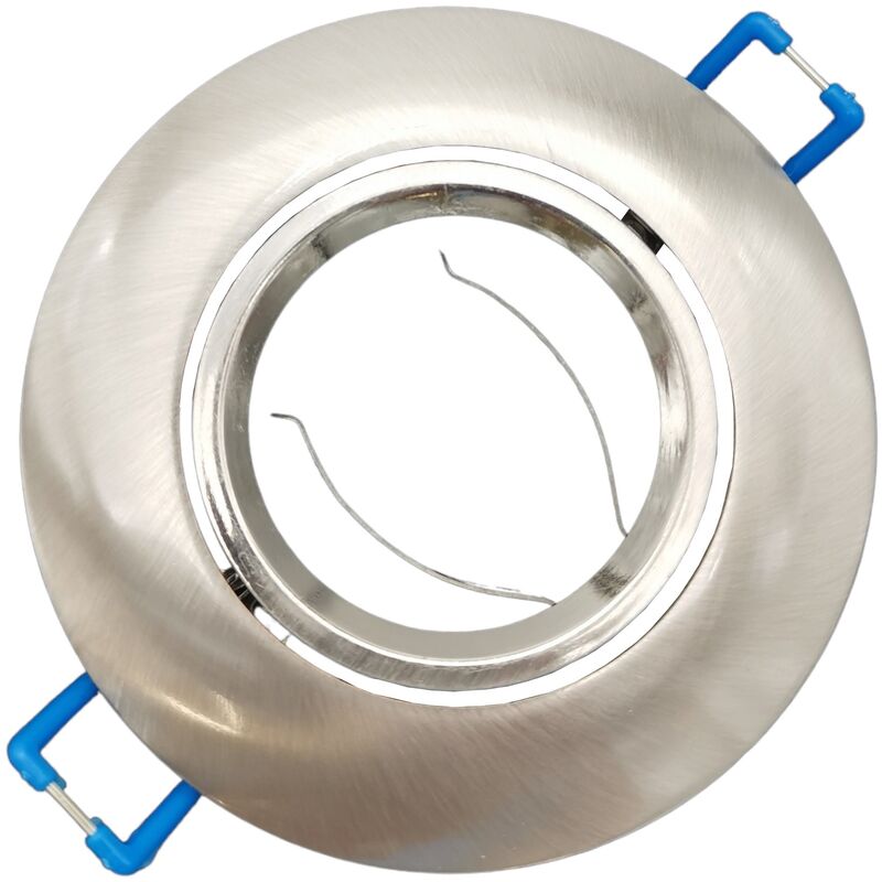 Porta faretto per lampadina GU10 tondo orientabile da incasso, completo di fermo blocco lampadina ed alette a molla per il fissaggio. Corpo realizzato in metallo, compatto e di facile installazione. Accessori e lampadina acquistabili negli accessori. Caratteristiche tecniche Materiale Metallo Colore Acciaio nickel Orientabile Si Dimensioni Diametro esterno 90 mm Foro incasso 72 - 80 mm Foro alloggio lampadina 50 mm(misura standard) Lampadina non inclusa