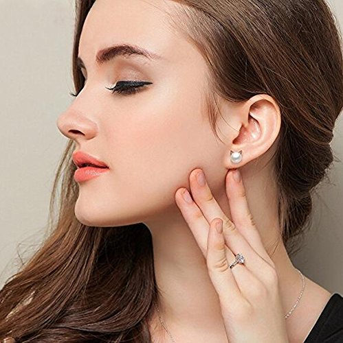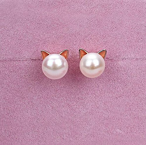 Millechic - Orecchini da donna, con Perle e Orecchie di gatto, in Argento Sterling 925, Diametro 6,5-7,0 mm, ipoallergenici