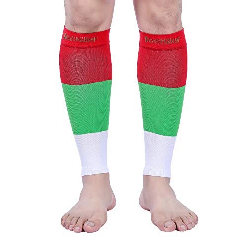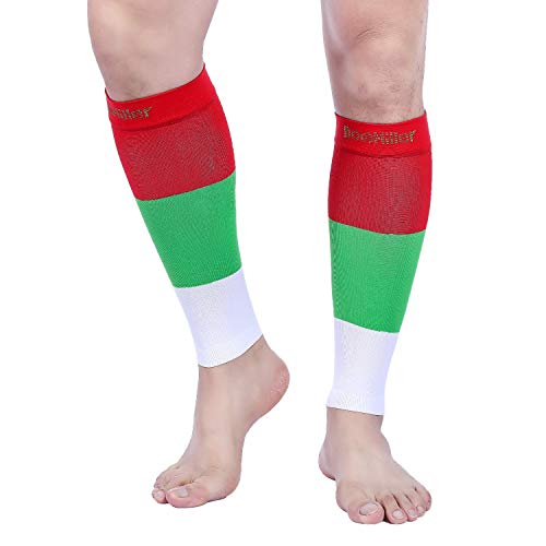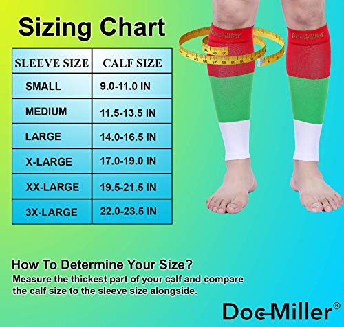 Doc Miller Vitello compressione manica 1 paio 15-20Mmhg forte pressione di supporto calzino Laureato Sport Esecuzione di recupero stecche Shin vene varicose X-Large RedGreenWhite