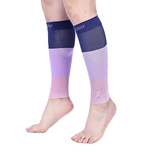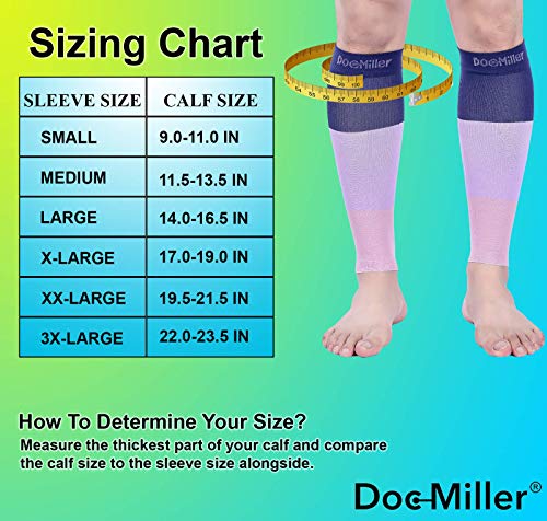 Doc Miller Vitello compressione manica 1 paio 15-20Mmhg forte pressione di supporto calzino Laureato Sport Esecuzione di recupero stecche Shin vene varicose XX-Large BlueLilacMauve