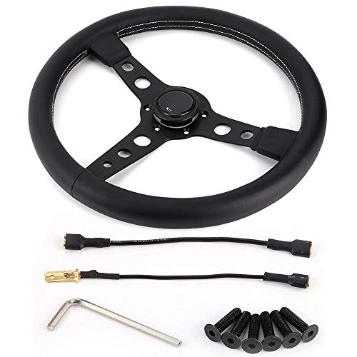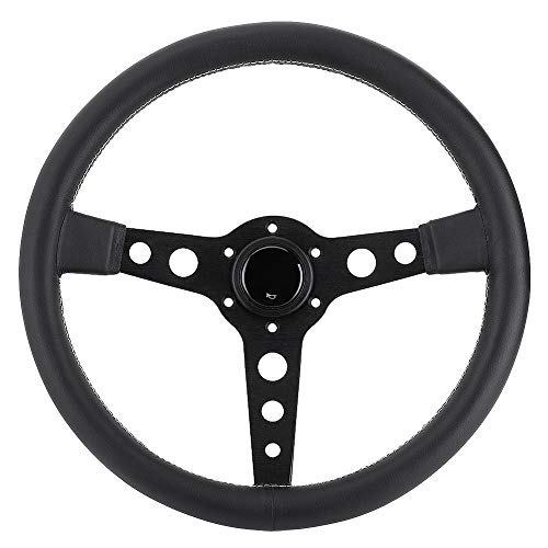 350 Millimetri / 14in / Adatta for Momo Prototipo Style 6-Bolt in Pelle Nera da Corsa Volante Grigio Cucitura di Pulsante clacson Accessori Auto