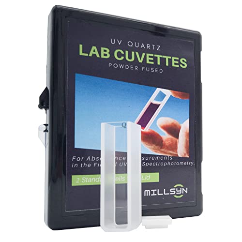 MILLSYN Cuvette al quarzo UV, polvere fusa, lunghezza standard del percorso 10mm per analisi dello spettrofotometro UV/vis, 2 celle con coperture in PTFE