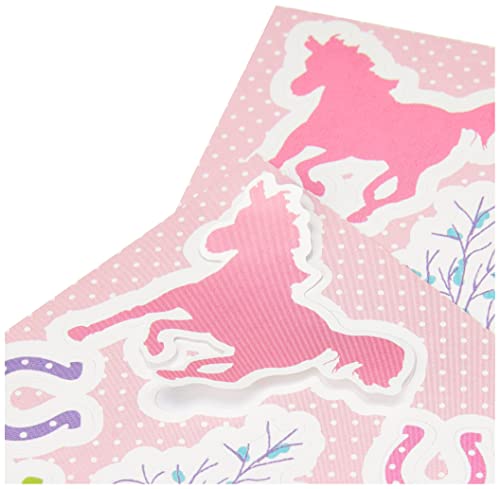 Ogni confezione contiene due fogli di adesivi assortiti - Cavalli, alberi e a ferro di cavallo.