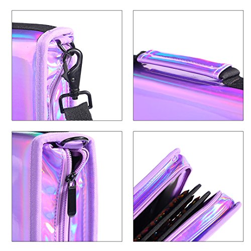 Millya - Astuccio porta matite con 160 scomparti multipli olografico per penna laser, con tracolla regolabile, per studenti di artisti