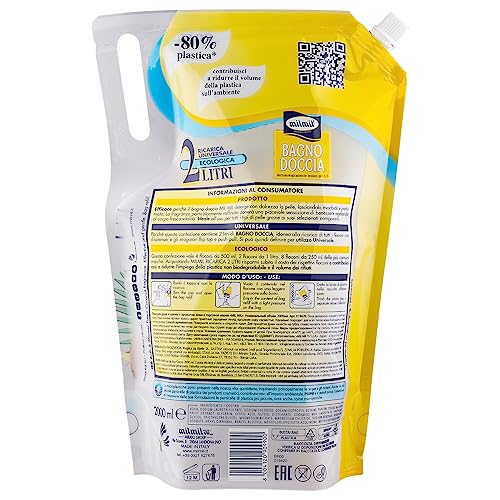 Milmil Bagno Doccia Cocco Oil, Detergente Profumato, Busta Ricarica Maxi, 4 x 2000 ML
