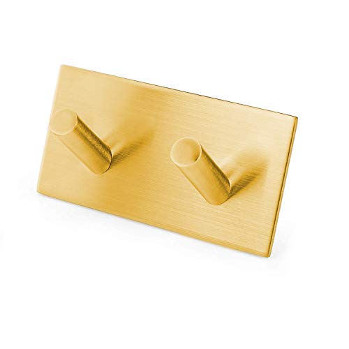 Milti Portasciugamani Autoadesivo Acciaio Inox 304 Finitura Spazzolata in Oro [Rettangolare] Ganci Adesivi di Senza Foratura per Bagno o Cucina, Niente più Forature, Adesivo 3M di Alta Qualità