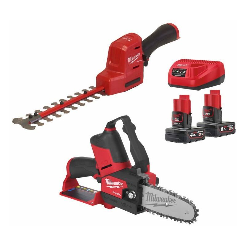 Combo kit giardinaggio M12 Include: - 1 sega a catena M12 FHS - 1 tagliasiepi M12 FHT20 - 1 batteria M12 B6 - 1 batteria M12 B4 - caricabetterie M12-18 FC Confezioni di imballo: 1