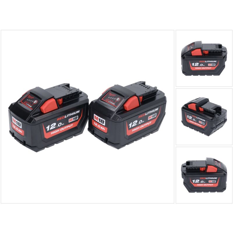Contenuto della confezione: - 2x Batterie Milwaukee M18 HB12 High Output 12,0Ah / 12000mAh 18V Li-Ion con indicatore di carica (4932464260) Descrizione del prodotto: La Milwaukee M18 è una potente batteria High Output da 12,0 Ah progettata per fornire fino al 50% di potenza in più rispetto alle altre batterie M18. È dotata della nuova elettronica intelligente REDLINK e di una protezione da sovratensione per garantire una sicurezza ottimale. Grazie alla gestione termica integrata, la batteria M18 viene mantenuta a una temperatura di lavoro ideale per garantire la massima durata. Inoltre, la tecnologia brevettata integrata nella batteria garantisce prestazioni eccezionali. È inoltre dotata di una gestione individuale delle celle, che garantisce prestazioni ottimali della batteria. La struttura metallica all'interno della batteria offre una protezione efficace contro le forti vibrazioni e le cadute. Naturalmente, la batteria da 12 ampere è compatibile con l'intera gamma Milwaukee M18.