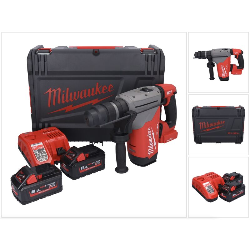 Contenuto della confezione: - 1x trapano a percussione a batteria Milwaukee M18 ONEFHPX - 1x Impugnatura laterale - 1x Misuratore di profondità - 1x Grasso per ingranaggi - 1x Mandrino FIXTEC 13 mm - 2 batterie Milwaukee M18 HB8 8.0 Li-Ion ad alto rendimento 18V - 1x caricabatterie rapido Milwaukee M12-18 FC - 1 scatola HD Descrizione del prodotto: MILWAUKEE presenta l'M18 ONEFHPX, il martello scalpellatore più potente della sua categoria. Ha una forza d'impatto di 5,0 J con un livello di vibrazioni ridotto a 6,9 m/s². La batteria HIGH OUTPUT™ M18 da 5,5 Ah consente di praticare fino a 10 fori di 10 mm di diametro e 100 mm di profondità. Il meccanismo di sicurezza brevettato AUTOSTOP™ favorisce lo spegnimento immediato e automatico dell'utensile in caso di inceppamento durante il funzionamento, per proteggere l'utente. La tecnologia ONE-KEY™ integrata facilita la localizzazione e la messa in sicurezza dell'utensile, semplicemente registrando i dati nel cloud per una rapida