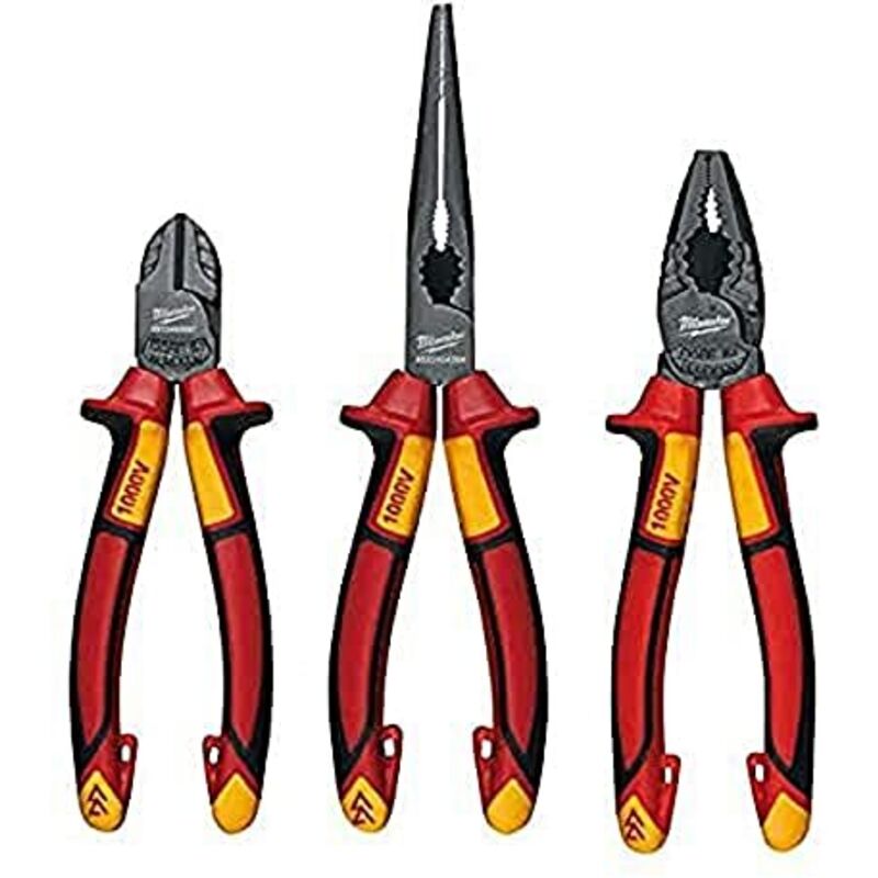 Dettagli: Set di 3 pinze isolate Milwaukee VDE. Caratteristiche: 1 pinza da taglio 160 mm 1 coppia di pinze 205 mm 1 pinza universale 180 mm