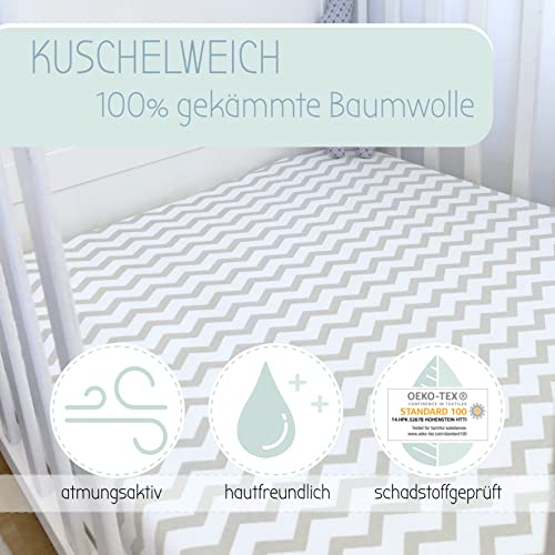 MimaDu lenzuola lettino con sbarre lenzuolo lettino 70x140 lenzuola lettino neonato materassino per lettino da campeggio | 100% cotone OEKO-TEX 60x120 70x140cm (Zig-zag)