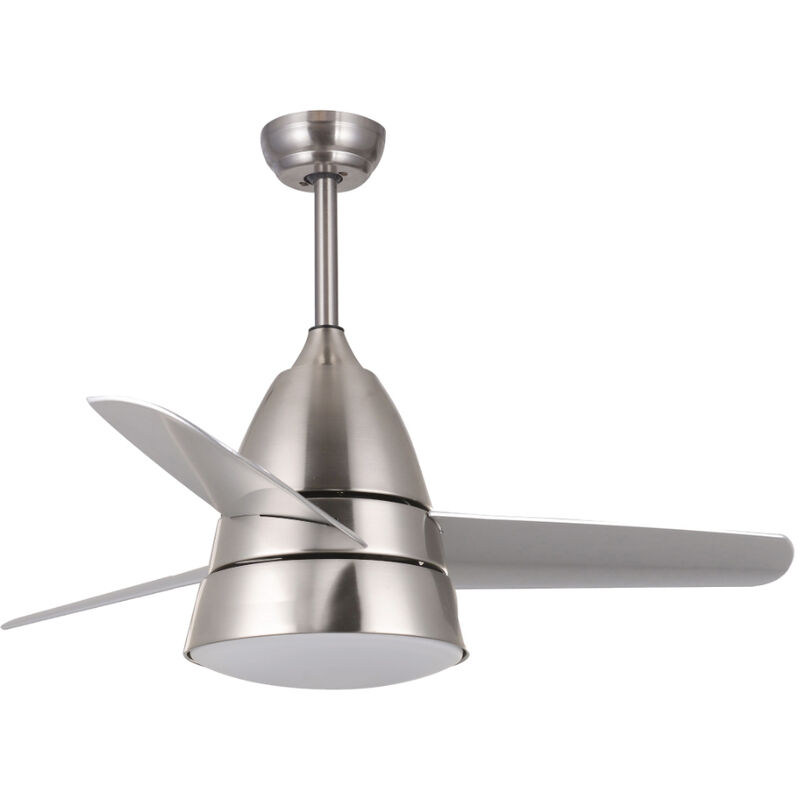 Collezione Alize DESIGN MODERNO E FUNZIONALITA' Ventilatore da soffitto moderno con struttura centrale in acciaio nichel satinato, ha una forma compatta, originale e ampia che prevede l'illuminazione nella parte inferiore. Possibilità di modificare l'altezza grazie a due aste incluse da 10 e 25 cm. Luce a LED integrata 24 w 1950 lumens, temperatura colore da 2700k a 6500k (è possibile scegliere tra luce calda, fredda e naturale) è utilizzata per un'illuminazione ideale della stanza, perfettamente combinata con la funzione del ventilatore a tre velocità. E' adattabile anche a soffitto inclinato, dotato di spegnimento automatico, con telecomando incluso e flusso d'aria 99 m3/min.