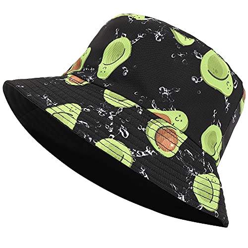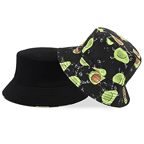 Mimfutu Cappello da Pescatore Donna Uomo, Reversibile Bucket Hat Cappello da Sole Estivo (Avocado Nero)