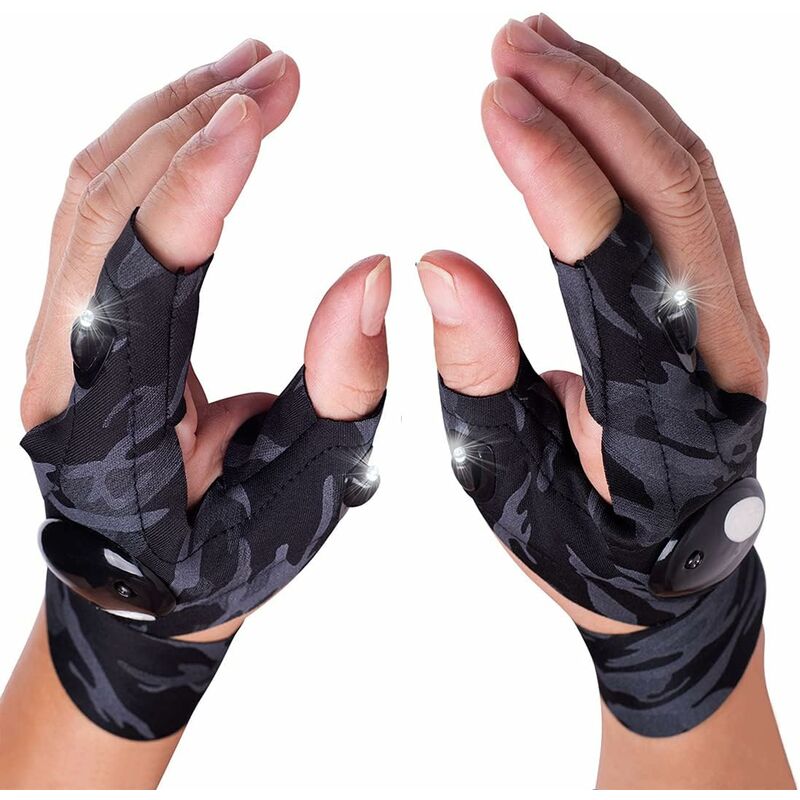 Guanti per torcia a LED (1 paio) Conveniente regalo per guanto per torcia a dito - Questi guanti per torcia sono un ottimo regalo per i papà che pescano per lavoro sulle auto mattutine o in altri luoghi stretti dove è necessaria la luce, facendo lavoro elettrico. È anche un regalo pratico per le mamme che corrono o lavorano, regali per ragazzi DJ. Ti aiuteranno totalmente. Abbastanza luminosi - Guanti da lavoro con torcia con 2 LED sull'indice e sul pollice e possono puntare ovunque, abbastanza luminosi per le attività. Il regalo perfetto per uomini, papà/patrigno/padre, nonno, marito, fidanzato, moglie, mamma, nonna., fratello, figlio, amico per la festa del papà, San Valentino, regali del giorno del Ringraziamento, imbottitura della calza di Natale, compleanno. Materiale confortevole: il guanto della lampada della tasca LED è realizzato in poliestere, più traspirante ed elastico di altri . Inoltre, i guanti sono dotati di cinturini in velcro estesi che possono allungarsi e