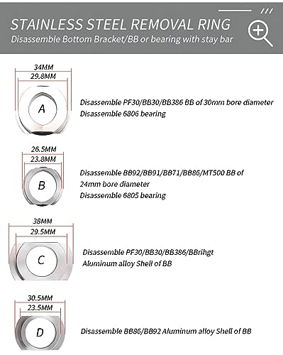 [INSTALLAZIONE PER LA MAGGIOR PARTE DEI MODELLI]: adatto per la rimozione di cuscinetti interni BB86 / BB30 / BB91 / BB92 / PF30-Press-Fit e per montare la maggior parte dei cuscinetti interni con filettatura cava.