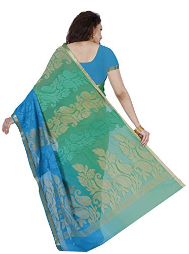 Mimosa By Kupinda Women's Chiffon Saree Kanjivaram Style Color:Sapphire (3441-2099-SAFF-PSTA)