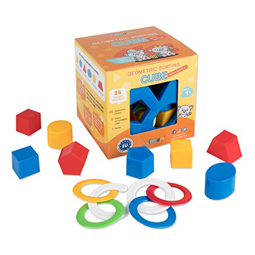 ✅ GIOCO DELLE FORME COMPLETO - Il Gioco delle Forme di Mimtom è un giocattolo classico, semplice e originale. Composto da una base a forma di cubo, 18 blocchi colorati di 6 forme diverse, a cui corrispondono i fori sui lati componibili dai bordi dentati e un sonaglio con 2 anelli da dentizione. Forme geometriche incluse: quadrato, cerchio, triangolo, ovale, pentagono e trapezio. Facile da montare, smontare e trasportare in qualsiasi posto.