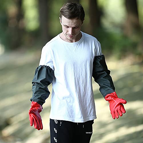 MIN-XL Guanti in gomma impermeabili, riutilizzabili, per laghetto, pesca, acquario, colore rosso