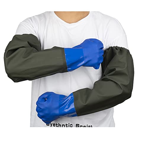 MIN-XL Guanti in gomma impermeabili, riutilizzabili, per laghetto, pesca, acquario, colore blu