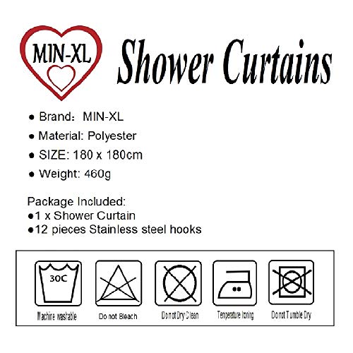 MIN-XL Tenda da Doccia, Tende per la Doccia Moderno Impermeabile Anti-Muffa Anti-Batterica Stampa Digitale 3D Tenda da Bagno con 12 anelli per tenda da doccia,180*180cm