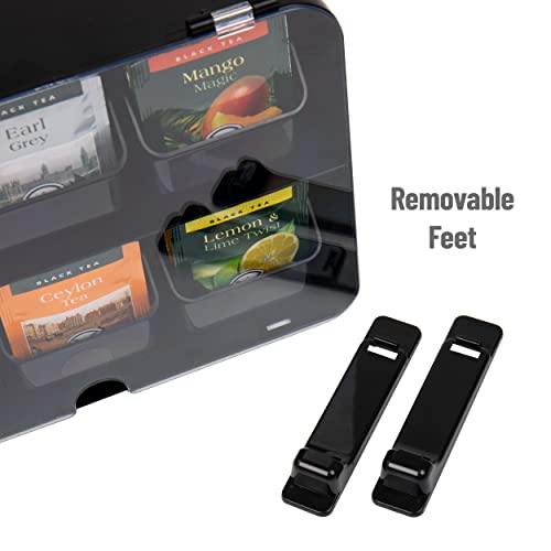 Mind Reader Foundation Collection, organizer per bustine di tè a 6 scomparti, capacità 72 sacchetti, cassetti rimovibili, coperchio trasparente incernierato, organizer da tavolo, montaggio a parete,