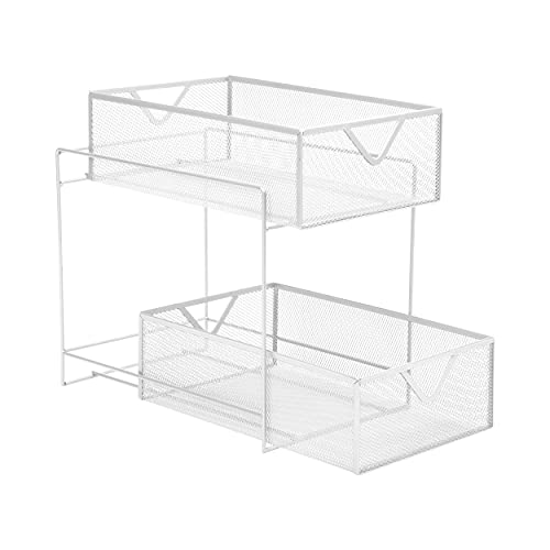 Mind Reader HCABASK2T-BLK - Armadietto a 2 ripiani, Acciaio, White 2 Tier Mesh, taglia unica