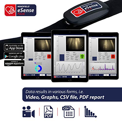 Mindfield eSense Pulse Cardiofrequenzimetro per Biofeedback con App Smartphone | Sensore di Variabilità Frequenza Cardiaca (HRV) e Battito Cardiaco con Fascia Toracica | Include App