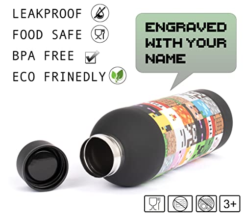 BORRACCIA DI MINECRAFT: Per bambini che amano giocare tutto il giorno a Minecraft, questa è la borraccia metallica perfetta per restare idratati nelle vostre avventure! Con una capienza di 700ml, il tappo avvitabile e un solido stile metallico - con incisione personalizzata aggiunta - queste borracce per bambini sono super facili e alla moda da usare
