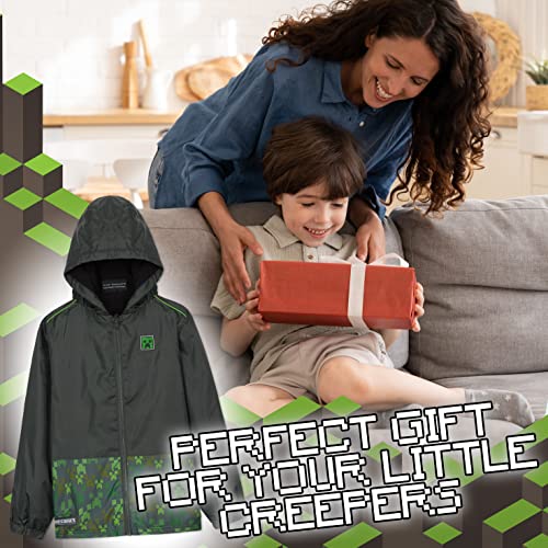 MINECRAFT Giacca Impermeabile Bambino, Giacca a Vento Antipioggia Foderata in Pile Ragazzo (Verde Scuro, 5-6 anni)