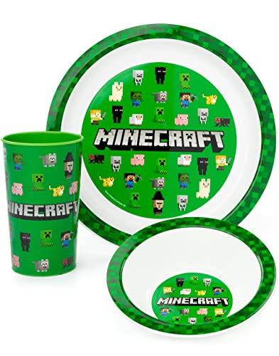 SET DI STOVIGLIE MINECRAFT DA 3 PEZZI PER BAMBINI - Aggiungi un po 'di divertimento ai loro pasti con questo set di stoviglie da gioco che include un piatto, una ciotola e una tazza da bere con porzioni per bambini.