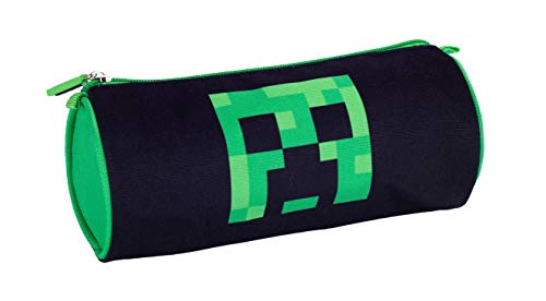 Minecrat - Astuccio portamatite rotondo, colore nero/verde