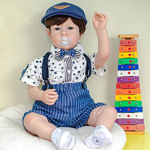 MineeQu 28 pollici 70 cm Alive Enorme Baby Size Reborn Toddler Boy Liam Bambola appena nata in vinile di silicone con ciuccio Magentic Look realistico per bambini Compleanno regalo di Natale