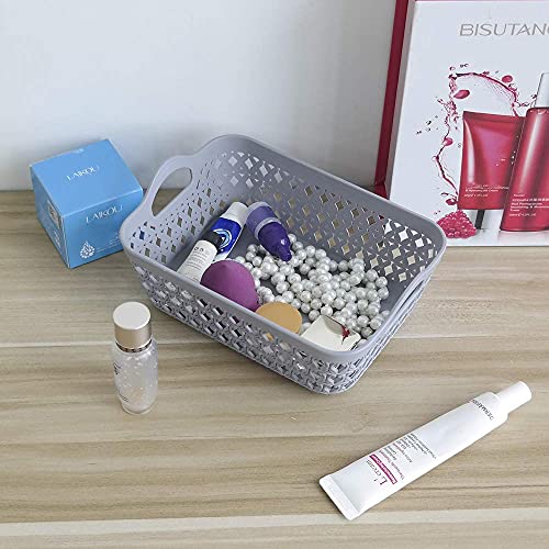 Minekkyes Set di 12 cestini portaoggetti in tessuto di plastica, cesto grigio piccolo con manico