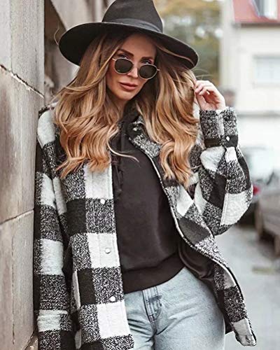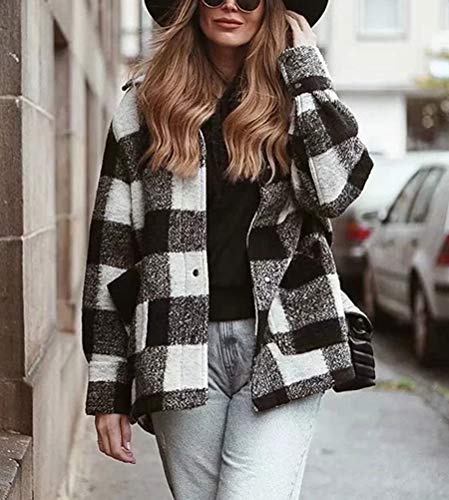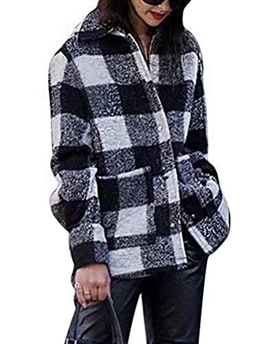 Minetom Camicia Donna Elegante Camicetta Manica Lunga Bluse Camicie A Quadri Blusa Casuale Taglie Forti Giacca Outwear Cappotto Cardigan B Nero Bianco Medium