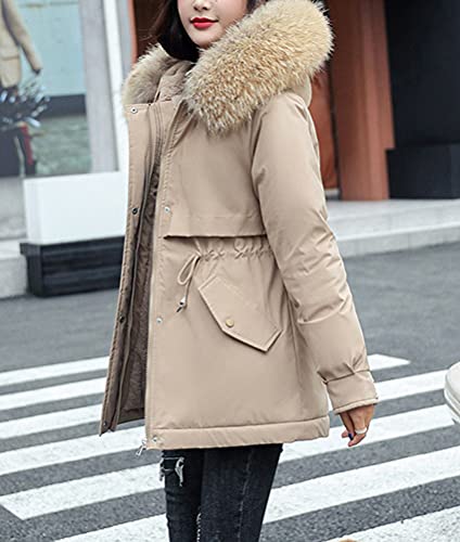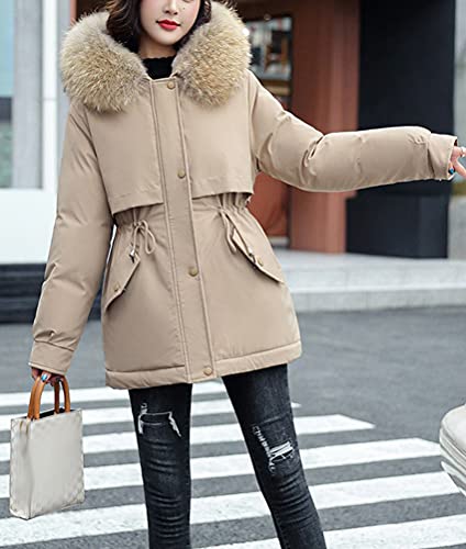 Minetom Cappotto Invernale Donna Piumino Giacca Invernale Lungo Trench Giubbotto Corto Giubbino con Pelliccia Ecologica Cappuccio C Beige S