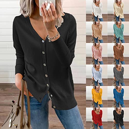 Minetom Cardigan Donna Cappotto Maglione con Bottoni Tinta Unita Scollo a V Manica Lunga Giacca Top in Maglia Verde L