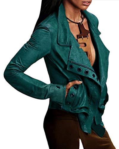 Minetom Donna Autunno Inverno Giacca Giacchetto Pelle Ecopelle Corto Slim Giacca da Motociclista Verde XL