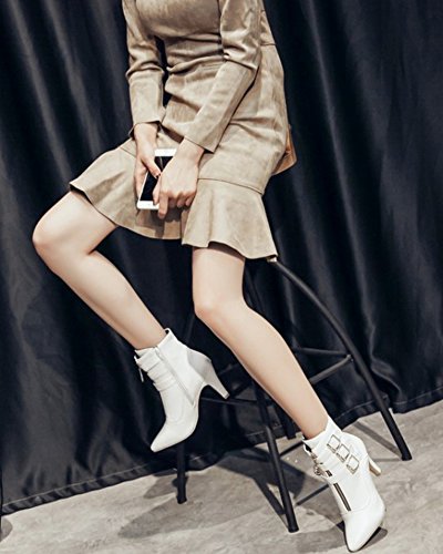 Minetom Donna Autunno Inverno Scarpe col Tacco Stivali Romani Stivaletti Cintura Cerniera Stivaletti Corti Bianco EU 45