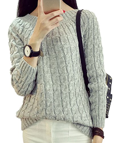 Minetom Donna Autunno Maglione Pullover Camicia Manica Lunga Felpe Camicetta Sweatshirt Top Grigio One Size