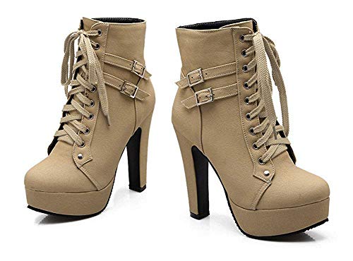 Minetom Donna Autunno Stivaletti Corti 9 Buchi Stivali Moda Stivaletti Ragazza Scarpe col Tacco Beige EU 39